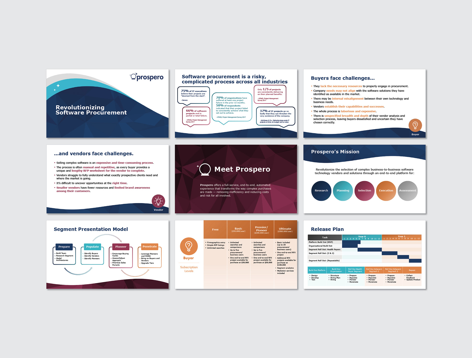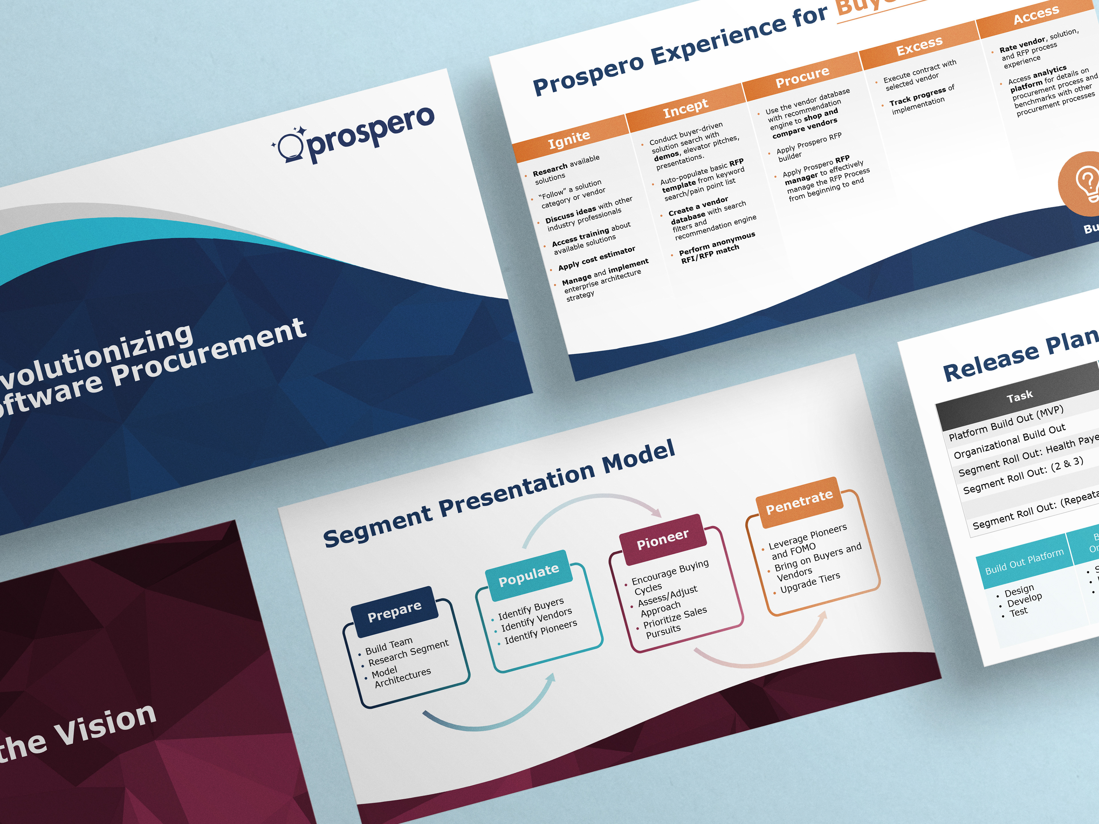 Prospero was a client who needed a logo refresh and a brand update across all of their marketing collateral, including a lengthy PPT deck. They wanted something colorful, yet professional.